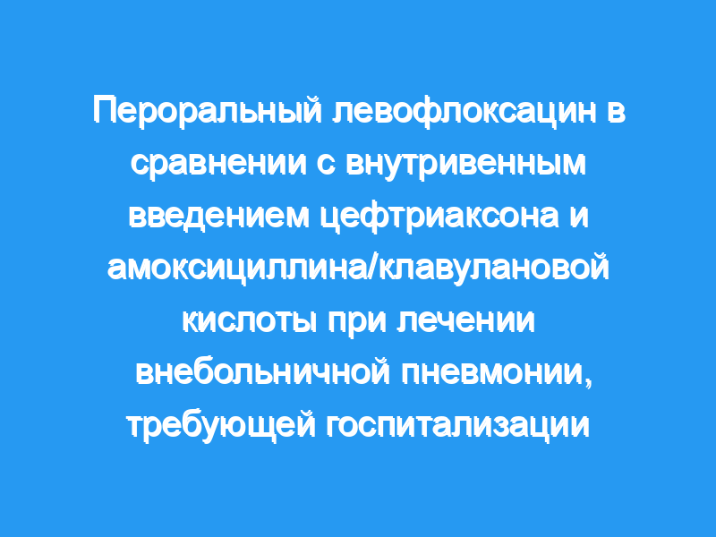 Недавно на фармацевтическом рынке появился левофлоксацин, антибиотик из семейства хинолонов, который с успехом применяется при амбулаторном лечении пациентов с внебольничной пневмонией. Целью данного исследования было сравнение эффективности и переносимости перорального (внутривенного) левофлоксацина (LVF) по сравнению с внутривенным (внутривенным) амоксициллином/клавуланатом (AMX/CL) и цефтриаксоном (CTX) при лечении внебольничной пневмонии, требующей госпитализации (CAPH). Пациенты и метод: В это проспективное и рандомизированное исследование были включены 84 пациента, по 28 на группу, обоего пола с ЦАПХ. Пациенты были распределены случайным образом для получения одного из следующих методов лечения: AMX/CL, 1,02 г внутривенно каждые 8 ч, CTX, 1 г внутривенно каждые 12 ч или LVF, 500 мг внутривенно каждые 24 ч. В начале каждого случая регистрировали клинические, биохимические и рентгенологические характеристики, а через 72 часа оценивали эффект лечения с использованием эволюции тепловой кривой и рентгенологических изображений. Количественные переменные анализировали с помощью ANOVA, качественные параметры — с помощью теста *2 и поправки Йейтса. Уровень значимости составил * = 0,05.