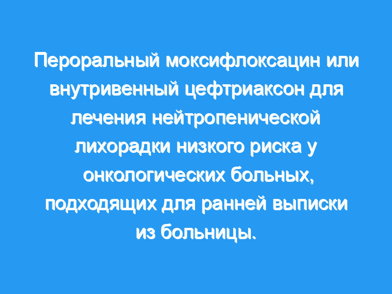Онкологические пациенты с фебрильной нейтропенией и благоприятным показателем MASCC были рандомизированы между пероральным моксифлоксацином и внутривенным введением цефтриаксона. Все они были пригодны для досрочной выписки из больницы. Глобальный показатель успеха был связан с эффективностью монотерапии, а также с успехом амбулаторного мониторинга.