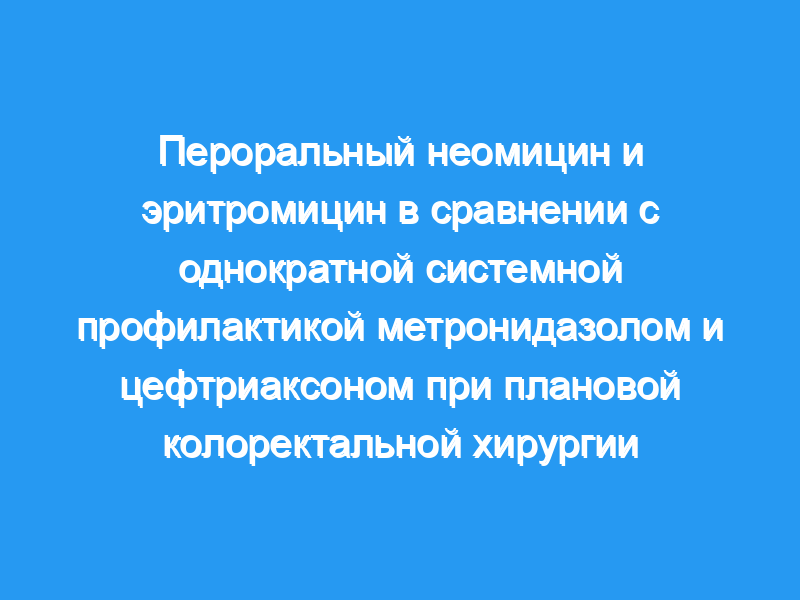 Было проведено проспективное рандомизированное исследование для сравнения перорального приема неомицина и эритромицина с однократным внутривенным введением метронидазола и цефтриаксона при плановой колоректальной хирургии.