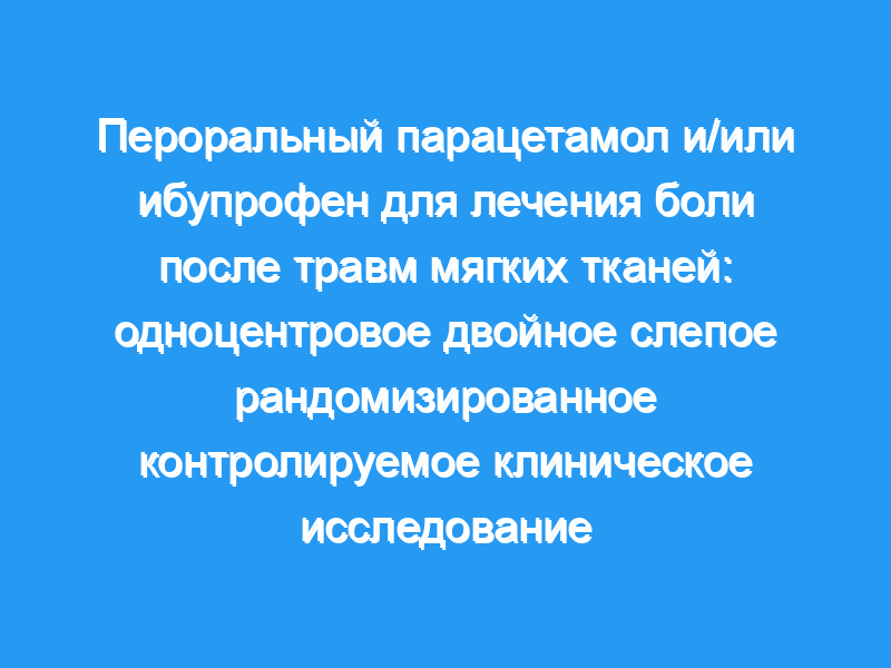 Травмы мягких тканей обычно поступают в отделение неотложной помощи (ED), часто с острой болью. Они вызывают значительные страдания и заболеваемость, если их не лечить должным образом. Парацетамол и ибупрофен являются широко используемыми анальгетиками, но остается неизвестным, является ли один из них или их комбинация лучшим средством для контроля боли.