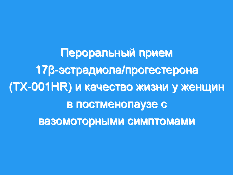 Целью исследования было описать влияние TX-001HR (17β-эстрадиол [E2] и натуральный прогестерон [P4] в одной капсуле для приема внутрь) на качество жизни в период менопаузы у женщин с умеренными и тяжелыми вазомоторными симптомами (VMS).