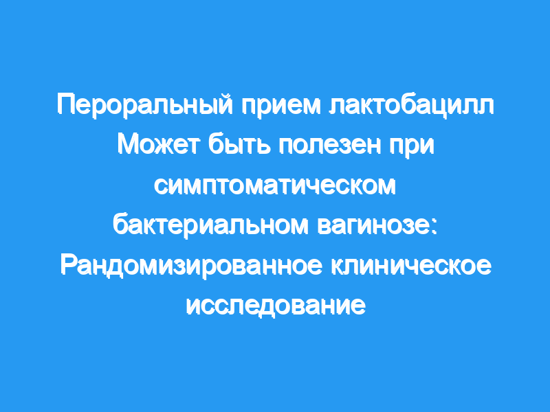 Целью исследования было изучение роли перорального приема смеси из 3 видов лактобацилл в рецидиве бактериального вагиноза (БВ).
