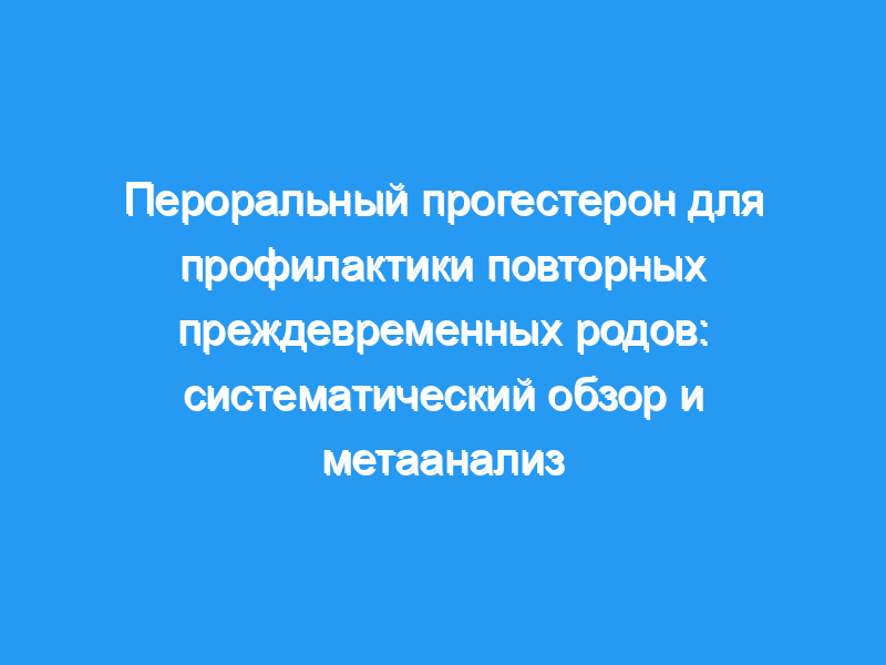 Объективные данные: Целью данного исследования было проведение систематического обзора и метаанализа рандомизированных контролируемых исследований перорального прогестерона в сравнении с плацебо или другими вмешательствами для предотвращения преждевременных родов при одноплодной беременности с предшествующими спонтанными преждевременными родами. Первичным исходом были преждевременные роды при <, 37 недель беременности, вторичные исходы включали частоту преждевременных родов при <, 34 недели беременности, неонатальную заболеваемость/смертность и побочные эффекты у матери. Исследование: Поиск был выполнен в PubMed, Scopus, ClinicalTrials.gov , PROSPERO, EMBASE и Cochrane Register с использованием комбинации слов, относящихся к «преждевременным родам», «преждевременным родам», «прогестерону», «прогестагенам» и «оральным», с момента создания каждой базы данных до апреля 2018 года. Кроме того, систематические обзоры прогестерона для профилактики преждевременных родов, которые были выявлены в ходе нашего поиска, также были рассмотрены для проведения дополнительных исследований. Мы включили все рандомизированные исследования бессимптомных одноплодных беременностей с предшествующими спонтанными одноплодными преждевременными родами, которые были рандомизированы на профилактическое лечение пероральным прогестероном против плацебо, без лечения или другого вмешательства при преждевременных родах. Критерии исключения включали квазирандомизированные исследования, в которых участвовали женщины с преждевременными родами/разрывом плодных оболочек во время рандомизации или многоплодной беременности. Методы оценки и обобщения исследований: Риск предвзятости и качество доказательств оценивались для каждого исследования. Все анализы были проведены с использованием подхода «намерение лечить». Первичным исходом была частота преждевременных родов на <, 37 недель беременности, вторичные исходы включали преждевременные роды на <,34 и <,28 недель беременности, нежелательные явления у матери, уровень прогестерона в сыворотке крови матери, а также неонатальную заболеваемость и смертность. Сводные показатели были представлены как относительный риск или средняя разница. I2 >,30% было использовано для выявления неоднородности.
