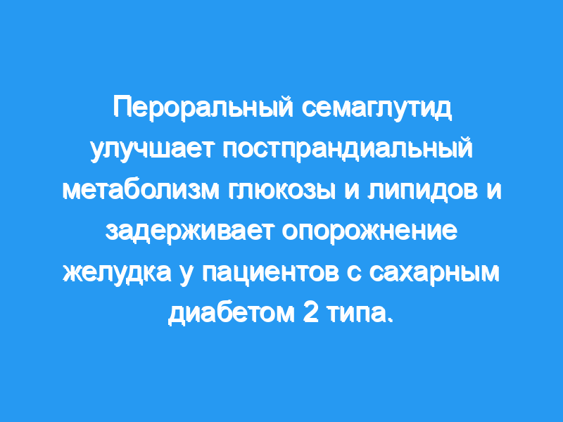 Пероральный прием семаглутида значительно улучшал метаболизм глюкозы и липидов натощак и после приема пищи, а также замедлял опорожнение желудка.