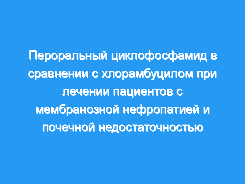 В течение 6 месяцев, предшествовавших лечению, уровень креатинина в сыворотке крови повышался с 148 +/- 50 чтобы 219 +/- 73 мумоль/л в группе хлорамбуцила и от 164 +/- 86 до 274 +/- 126 мумоль/л в циклофосфамидном растворе.