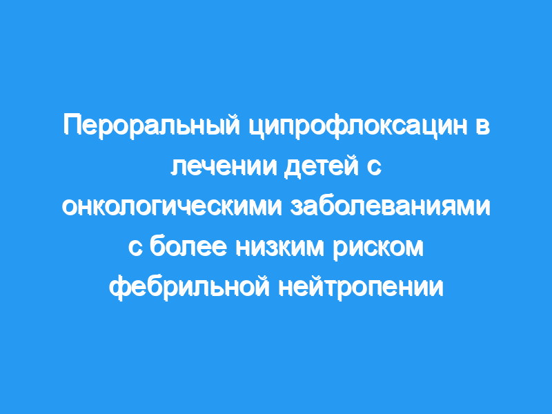 У детей с лихорадочной нейтропенией после противоопухолевой терапии и с признаками более низкого риска пероральный прием ципрофлоксацина в течение 6 дней после 24 часов внутривенного введения цефтраксона плюс амикацина, по-видимому, столь же эффективен, как и внутривенное введение цефтриаксона плюс амикацина в течение еще 2 дней с последующим приемом цефиксима в течение еще 4 дней. Эти результаты способствуют укреплению концепции LRFN.