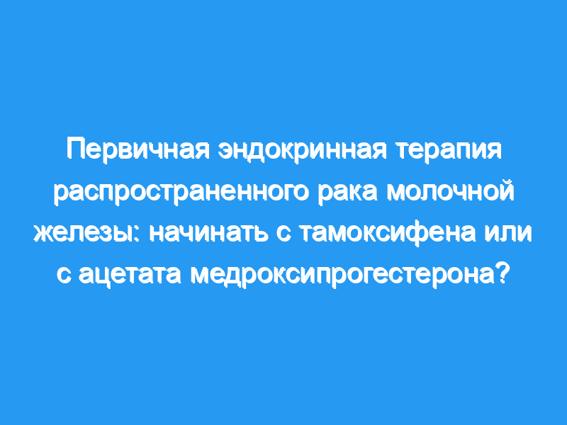 Доступность соединений, эффективных против метастатического заболевания и в то же время превосходно переносимых даже при длительном применении, определила выбор тамоксифена в качестве основного средства для облегчения метастатического рака молочной железы. Другие препараты или другие гормональные подходы практически не тестировались против тамоксифена, особенно в качестве лечения первой линии. Пациенты и методы: 119 пациентов с метастатическим раком молочной железы и без предшествующей эндокринной терапии были рандомизированы для приема либо тамоксифена (ТАМ) в дозе 20 мг/сут перорально (64 пациента), либо медроксипрогестерона ацетата (MAP) по 1 г/сут внутримышечно 5 дней в неделю в течение 4 недель, а затем по 500 мг два раза в день. неделя (55 пациентов). Последующая эндокринная терапия также была проспективно определена при поступлении в исследование.
