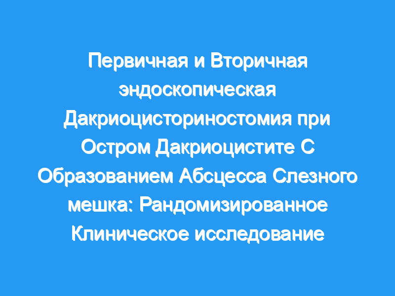 Сравнить результаты EN-DCR в качестве основного лечения с EN-DCR в качестве вторичного лечения после чрескожного дренирования абсцесса слезного мешка при остром дакриоцистите. Дизайн, условия и участники: Это рандомизированное клиническое исследование проводилось с 1 октября 2012 года по 31 октября 2015 года в офтальмологическом центре высшего уровня. Показатели оценки успеха на 1-м году послеоперационного периода были сопоставлены с процедурами, полученными участниками. Все хирургические процедуры были выполнены 2 окулопластическими хирургами с разным уровнем опыта EN-DCR. У подходящих участников в возрасте от 18 до 90 лет был острый дакриоцистит и абсцесс слезного мешка, возникший в течение 2 недель после начала заболевания. Анализ проводился среди населения, намеревающегося лечиться. Вмешательства: Пациенты были распределены путем блочной рандомизации для получения либо чрескожного дренирования абсцесса слезного мешка с последующим EN-DCR после стихания острого эпизода (контрольная группа), либо первичного EN-DCR в течение 2 недель после появления (группа вмешательства). Обе группы получали курс эмпирических системных антибиотиков (амоксициллин и клавулановая кислота по 375 мг 3 раза в день в течение 1 недели). Основные результаты и меры: Первичными результатами были время от представления до документирования разрешения симптомов и рецидива в течение 3 месяцев.