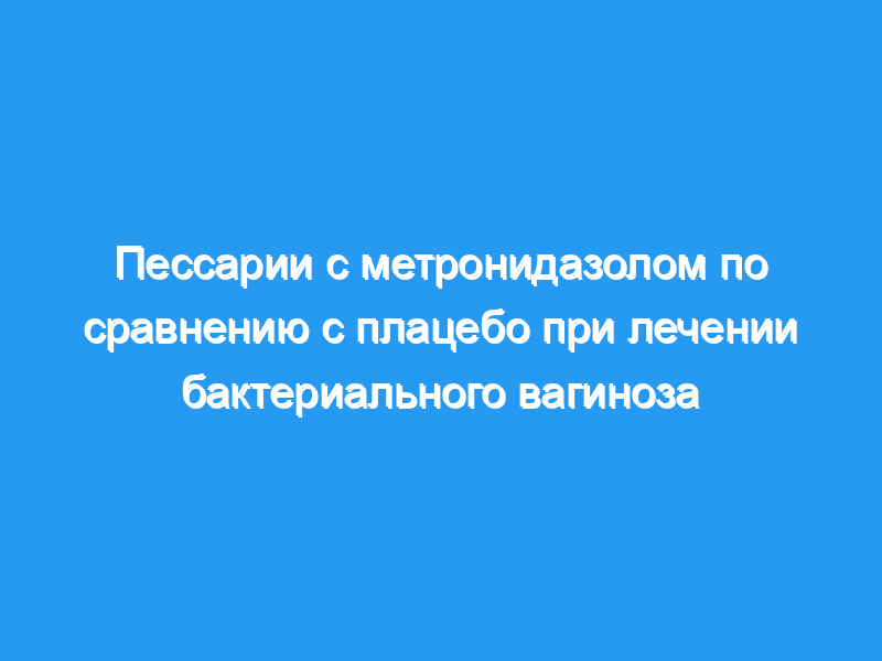 На контрольном визите сразу после завершения лечения ни одна из пациенток, получавших метронидазол, не соответствовала критериям бактериального вагиноза, по сравнению с 12 (35%) в группе плацебо (р менее 0,001). У девяти (22%) пациентов, получавших метронидазол, после лечения обнаружилась вагинальная гарднерелла, по сравнению с 31 (91%) в группе плацебо (р менее 0,001). Симптомы улучшились или исчезли у 33 (80%) пациентов, получавших метронидазол, и у 18 (53%) пациентов, получавших плацебо (р менее 0,05). Через четыре недели после контрольного визита о симптомах сообщили 28% в группе метронидазола и 44% в группе плацебо (р более 0,05). Пессарии с метронидазолом эффективны при лечении бактериального вагиноза.