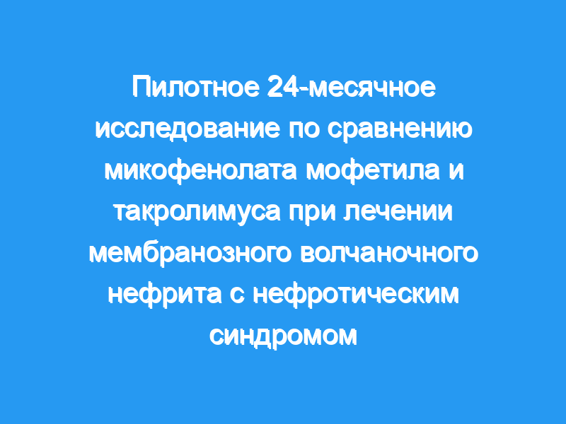 В этом пилотном исследовании сравнивались микофенолат мофетил (MMF) и такролимус (Tac) при лечении тяжелого мембранозного волчаночного нефрита (MLN). Метод: Это было 24-месячное проспективное, рандомизированное, открытое многоцентровое исследовательское исследование на китайских пациентах с подтвержденным биопсией чистым MN класса V с нефротическим синдромом. Пациенты были рандомизированы для лечения либо MMF, либо Tac, как в комбинации с преднизолоном, и были изучены результаты эффективности и переносимости.