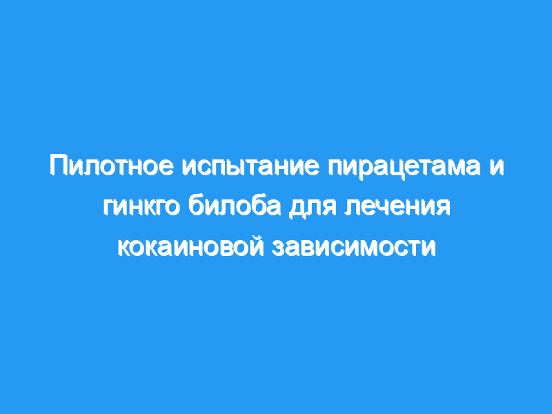 Это было 10-недельное двойное слепое плацебо-контролируемое пилотное исследование с участием 44 зависимых от кокаина испытуемых. Испытуемые получали либо пирацетам (4,8 г/сут), гинкго билоба (120 мг/сут), либо плацебо. Испытуемые должны были достичь воздержания от употребления кокаина в течение 2-недельной базовой фазы, продемонстрированной предоставлением по крайней мере одного отрицательного на бензоилекгонин (BE) токсикологического анализа мочи. Показатели результатов включали удержание лечения, анализ мочи на токсикологию, оценку общего клинического впечатления (CGI) и результаты Индекса тяжести зависимости (ASI).