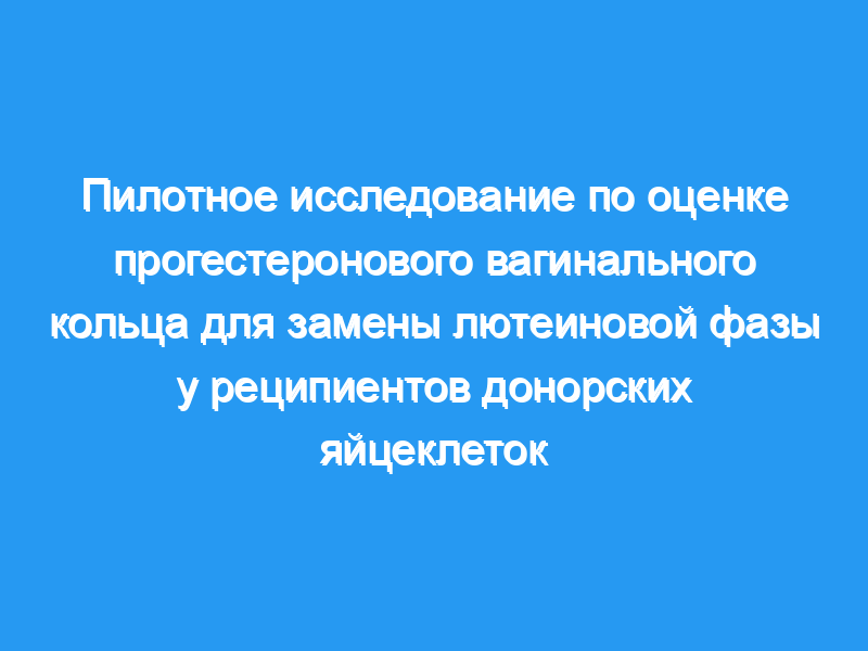 Программа донорских яйцеклеток в академическом центре. Пациент (ы): Женщины, которые являются кандидатами на донорские яйцеклетки. Вмешательство (вмешательства): Субъекты были проанализированы на предмет адекватной трансформации эндометрия после подавления и предварительной обработки препаратом Е(2). Испытуемых лечили 18-дневным препаратом Е(2) в сочетании с еженедельным вагинальным кольцом Р или 90 мг 8% вагинального геля два раза в день. Биопсию эндометрия проводили на 25 или 26-й день цикла. Девять испытуемых, успешно завершивших пробный цикл, участвовали в цикле ET с использованием того же случайно назначенного исследуемого препарата. Основные показатели результата: Адекватная трансформация эндометрия, беременность, безопасность и переносимость вагинального кольца. Результат(ы): Двадцать женщин, рандомизированных в соотношении 1:1 либо с вагинальным кольцом P, либо с вагинальным гелем, завершили имитационный цикл. Гистология эндометрия была «в фазе» для 8 из 10 (80%) в группе вагинального кольца и 10 из 10 (100%) в группе геля. У женщин, участвовавших в цикле ЭТ, клинические беременности и живорождения наблюдались у 4 из 5 (80%) в группе вагинального кольца и у 1 из 4 (25%) в группе вагинального геля. Заключение(ы): У женщин, нуждающихся в замене лютеиновой фазы, вагинальное кольцо P было способно адекватно трансформировать эндометрий и было сопоставимо с вагинальным гелем P по эффективности и безопасности, предлагая преимущество еженедельных, а не многократных ежедневных доз.