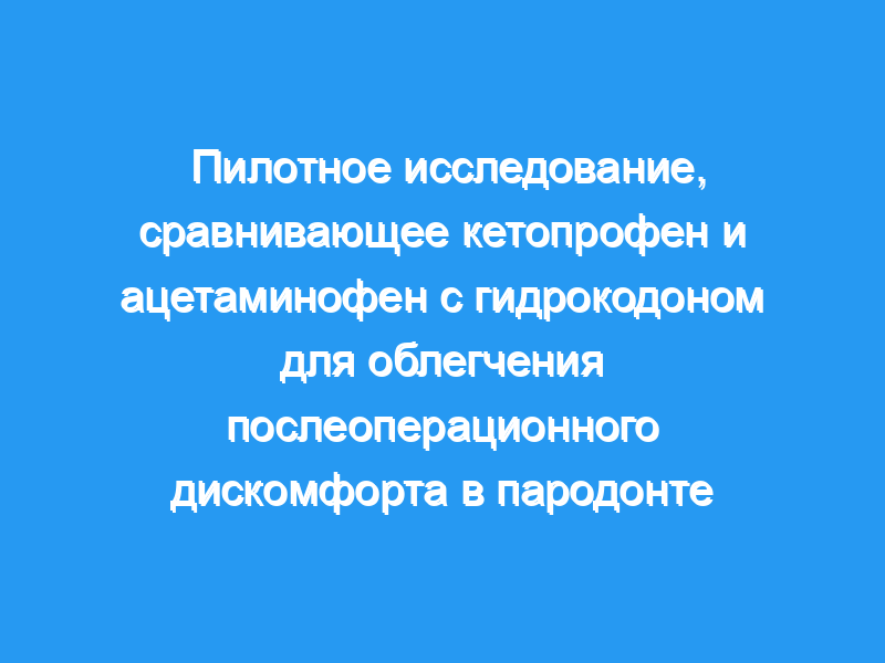 Целью этого исследования было сравнить кетопрофен с ацетаминофеном с гидрокодоном (В/в) в режиме послеоперационной пародонтальной боли.