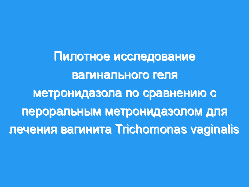 Это исследование было проведено для сравнения эффективности и безопасности 0,75%-ного вагинального геля метронидазола с пероральным метронидазолом для лечения трихомонального вагинита. Дизайн исследования: Женщины с трихомонозом были включены в это рандомизированное открытое пилотное исследование с использованием 0,75% вагинального геля метронидазола два раза в день в течение 7 дней по сравнению с 7-дневным пероральным приемом метронидазола в дозе 250 мг три раза в день. Пациенты были осмотрены для последующих визитов через 5-7 дней и через 21-28 дней после последней дозы лекарства.