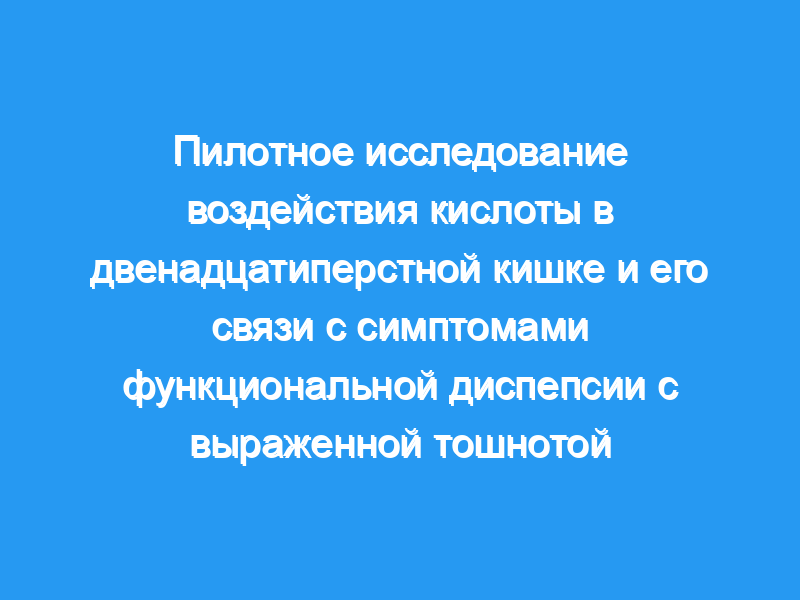 Сообщалось о гиперчувствительности двенадцатиперстной кишки к кислоте и снижении дуоденального клиренса экзогенной кислоты при функциональной диспепсии (ФД). Однако связь этих отклонений со спонтанным воздействием кислоты в двенадцатиперстной кишке и диспепсическими симптомами при ФД неизвестна.