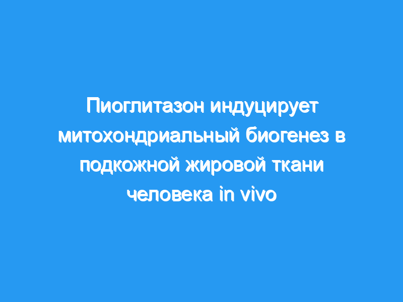 Целью настоящего исследования было определить влияние пиоглитазона на митохондриальный биогенез и экспрессию генов, участвующих в жировой окисление кислот в подкожной жировой клетчатке.