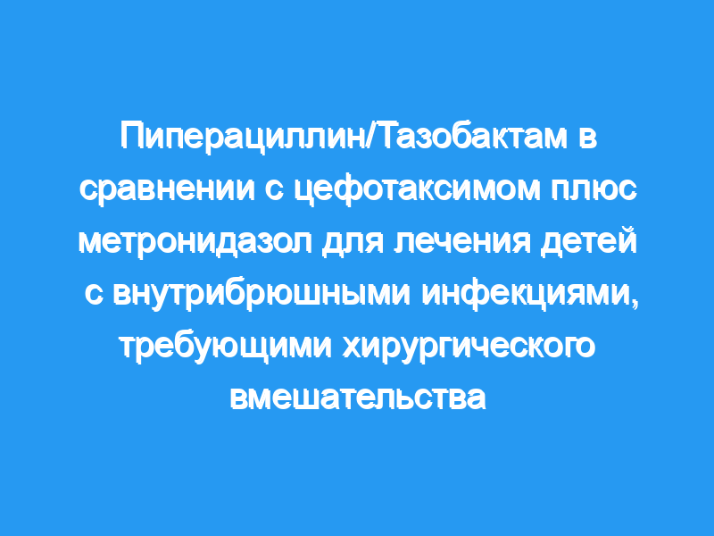 В этом исследовании пиперациллин/тазобактам были столь же эффективны, как цефотаксим плюс метронидазол, для лечения детей с внутрибрюшными инфекциями, требующими хирургического вмешательства.