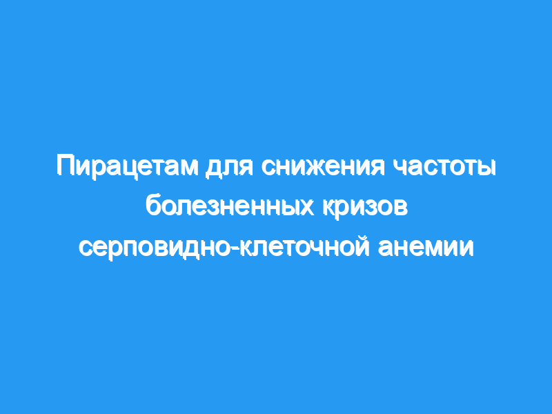 Оценить эффективность пирацетама для снижения частоты болезненных кризов серповидно-клеточной анемии. Стратегия поиска: Мы провели поиск по Реестру исследований Кокрейновского муковисцидоза и генетических расстройств, связанных с гемоглобинопатиями, который включает ссылки, выявленные в результате всестороннего поиска в электронной базе данных, а также рукописных материалов соответствующих журналов и сборников тезисов докладов конференций. Дата последнего поиска в Реестре исследований Группы по гемоглобинопатиям: февраль 2007 года. Критерии отбора: Рандомизированные контролируемые исследования, сравнивающие пероральный прием пирацетама с плацебо или стандартной терапией у людей всех возрастов и обоих полов с серповидно-клеточной анемией. Сбор и анализ данных: Два автора независимо оценивали качество исследования и извлекали данные. С авторами исследования связались для получения дополнительной информации. В ходе испытаний были собраны данные о побочных эффектах.