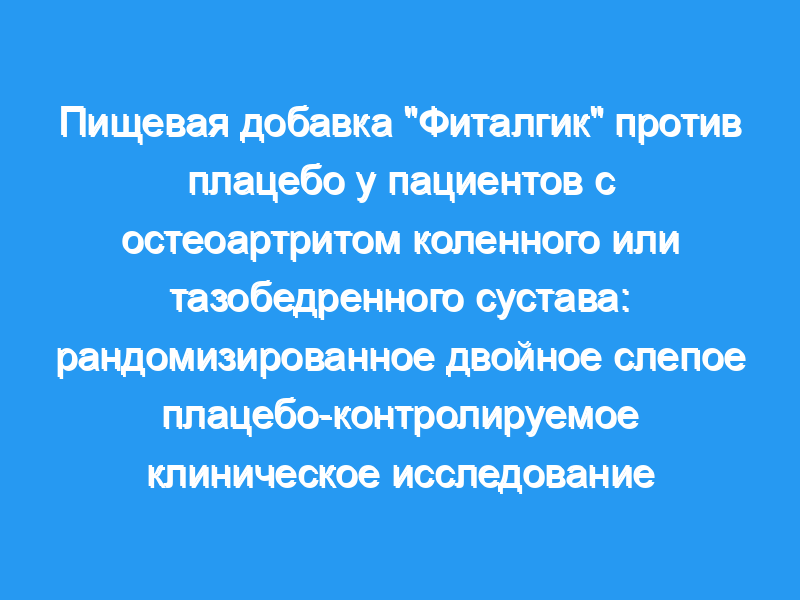 Медикаментозное лечение остеоартрита (ОА) в основном симптоматическое для облегчения боли и потери трудоспособности с помощью анальгетиков и нестероидных противовоспалительных препаратов (НПВП), препаратов с хорошо известными рисками. Дополнительные лекарства могут уменьшить симптомы ОА и уменьшить потребность в НПВП. В этом исследовании проверялось влияние пищевой добавки «Фиталгик» на боль и функции у пациентов с остеоартритом и их использование анальгетиков и НПВП.