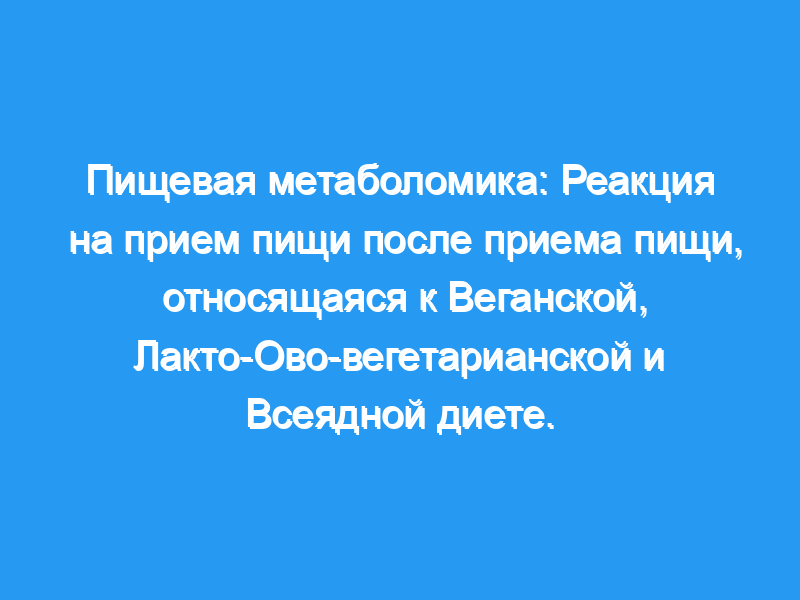 В этом исследовании метаболомика применялась для определения метаболического ответа после приема пищи на завтрак, соответствующего веганскому (VE), лакто-ово-вегетарианскому (LOV) и всеядному (ОМ) диета.