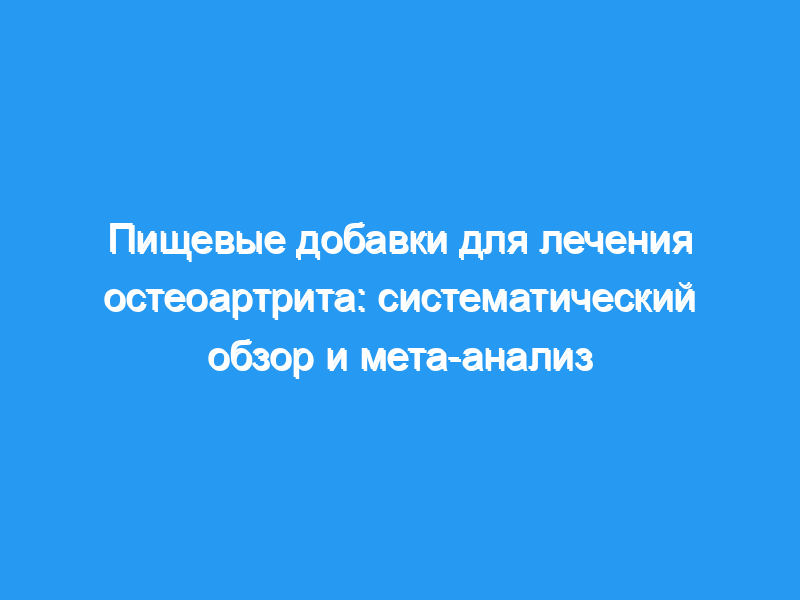 Изучить эффективность и безопасность пищевых добавок для пациентов с остеоартритом. Дизайн: Систематический обзор вмешательства с мета-анализом случайных эффектов и мета-регрессией. Источники данных: MEDLINE, EMBASE, Cochrane Register of Controlled Trials, Allied and Complementary Medicine и Совокупный индекс литературы по сестринскому делу и смежной медицинской литературе были проанализированы с момента создания до апреля 2017 года. Критерии приемлемости исследования: Рандомизированные контролируемые исследования, сравнивающие пероральные добавки с плацебо при остеоартрите кисти, бедра или колена.