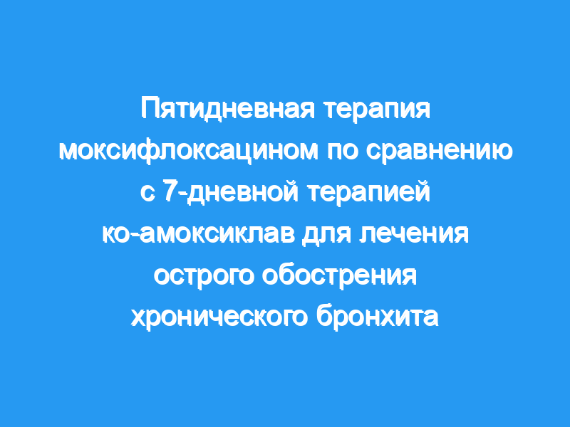В этом рандомизированном, не слепом исследовании сравнивали эффективность и безопасность 5-дневного курса моксифлоксацина (одна таблетка по 400 мг в день) с ко-амоксиклав (одна таблетка по 625 мг каждые 8 часов) в течение 7 дней для лечения острых обострений хронического бронхита (AECB). Всего было зарегистрировано 162 пациента с явными признаками острого обострения хронического бронхита.