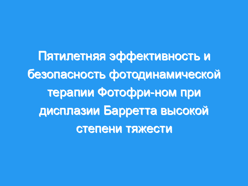 Пищевод Барретта (BE) с дисплазией высокой степени (HGD) является фактором риска развития рака пищевода. Фотодинамическая терапия (ФДТ) с использованием Фотофрина (ФО) использовалась для устранения РТПХ при БЭ.