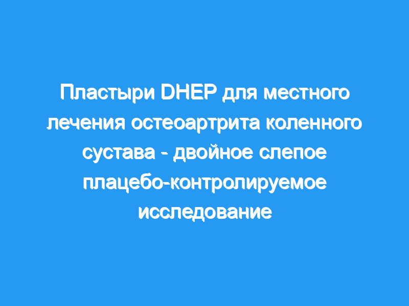 Это исследование показывает, что пластырь DHEP значительно отличается от аналогичного PBO в улучшение боли и состояния пациента при болезненном остеоартрите коленного сустава.