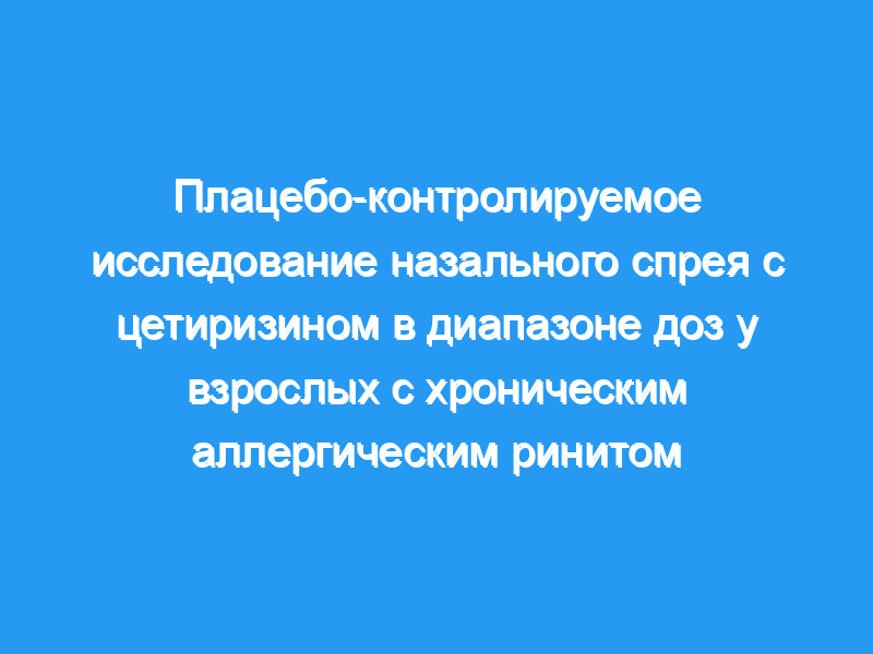 В общей сложности 360 пациентов с хроническим аллергическим ринитом были рандомизированы в плацебо-контролируемом исследовании с определением дозы, в котором сравнивались три концентрации (0,06%, 0,125% и 0,25%) назального спрея цетиризина, вводимого три раза в день в течение 2 недель.