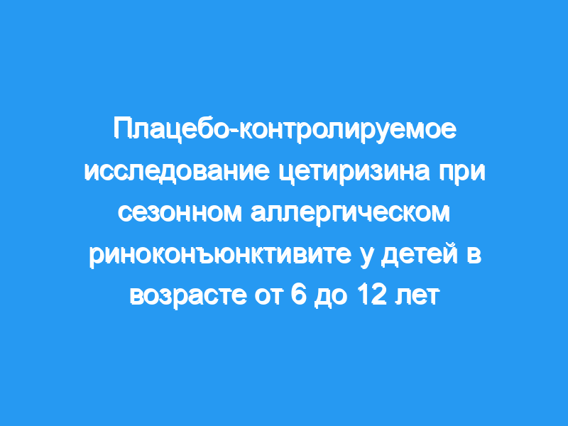 В общей сложности 124 ребенка обоего пола в возрасте от 6 до 12 лет с ассоциированным с пыльцой риноконъюнктивитом были включены в многоцентровое двойное слепое исследование с параллельным групповым дизайном для сравнения эффектов цетиризина в дозе 10 мг ежедневно, вводимого по 5 мг утром и вечером в течение 2 недель, с теми, от плацебо идентичного внешнего вида.