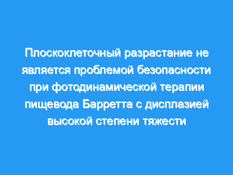 Не наблюдалось различий в чрезмерном росте плоскоклеточного рака между пациентами, получавшими PHOPDT плюс омепразол, по сравнению с только омепразолом. Плоскоклеточный избыточный рост не скрывал самую распространенную неоплазию ни у одного пациента. Лечение HGD с помощью PHOPDT у пациентов с BE не представляет долгосрочного риска неспособности выявить субсквамозную дисплазию или карциному.