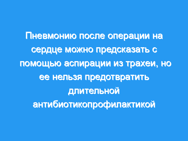 Целью данного исследования было оценить значение аспирата из трахеи как предиктора пневмонии после аортокоронарного шунтирования и оценить эффективность длительной периоперационной антибиотикопрофилактики.