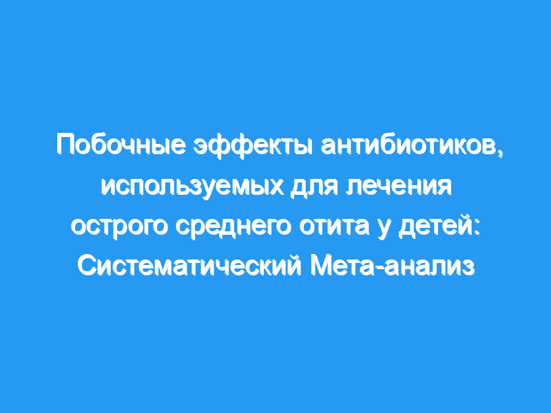 Охарактеризовать частоту нежелательных явлений (НЯ), связанных с антибиотиками, используемыми для лечения острого среднего отита у детей. Дизайн исследования: Мы искали в MEDLINE исследования, проведенные в период с 1 января 1966 года по 25 августа 2018 года. Два автора независимо оценивали потенциальные исследования и извлекали данные. Мы включили опубликованные рандомизированные контролируемые исследования, перекрестные исследования и когортные исследования, в которых оценивалась частота диареи, генерализованной сыпи, опрелостей и кандидозного пеленочного дерматита, связанных с применением амоксициллина, амоксициллина/клавуланата, азитромицина, цефдинира и плацебо у детей с острым средним отитом.
