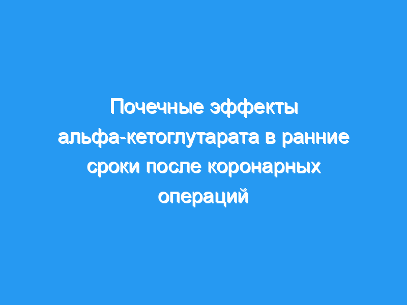 Инфузия альфа-КГ улучшает почечный кровоток в ранние сроки после коронарных хирургических вмешательств у пациентов с нормальной функцией почек. Механизм неясен, но может быть связан в первую очередь с метаболическими эффектами и потенциально может оказывать благоприятное влияние на функцию почек.