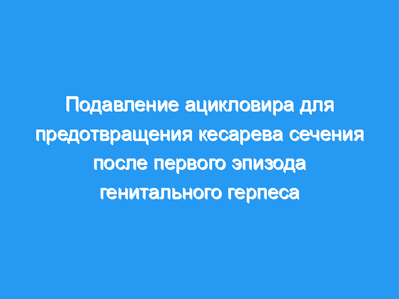 Чтобы определить, уменьшает ли подавляющая терапия ацикловиром, назначаемая доношенным женщинам, у которых во время беременности произошел первый эпизод заражения вирусом простого генитального герпеса (ВПГ), необходимость в кесаревом сечении по этим показаниям. Сорок шесть беременных женщин с первыми эпизодами генитального герпеса во время беременности были рандомизированы для приема перорального ацикловира в дозе 400 мг или плацебо три раза в день с 36 недель беременности до родов в рамках проспективного двойного слепого исследования. Культуры вируса простого герпеса были получены, когда пациенты были представлены для родов. Вагинальные роды разрешались при отсутствии клинического рецидива, в противном случае проводилось кесарево сечение. Были получены неонатальные культуры ВПГ, и младенцы находились под клиническим наблюдением.