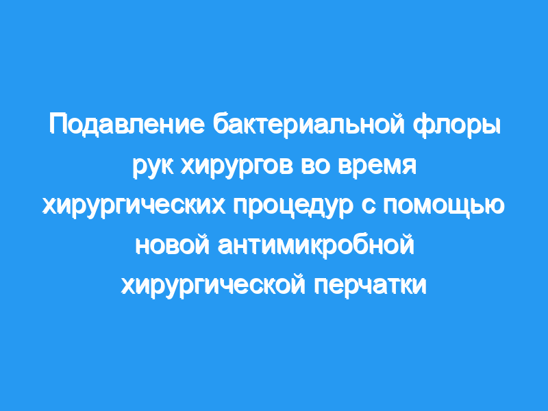 Новая антимикробная хирургическая перчатка подавляла флору рук хирургов во время оперативных вмешательств. В случае повреждения перчаток использование таких перчаток может потенциально предотвратить бактериальное загрязнение стерильного хирургического участка, тем самым снижая риск инфицирования хирургического участка (SSI) и повышая безопасность пациента. Необходимы дальнейшие клинические исследования, чтобы подтвердить эту концепцию.