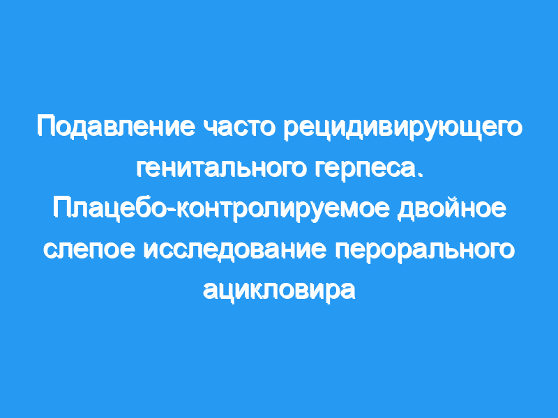 Мы изучили 35 здоровых в остальном взрослых с часто рецидивирующим генитальным герпесом (более или равным 1 эпизоду в месяц) в двойном слепом исследовании, в котором сравнивали пероральный ацикловир с капсулами плацебо для подавления рецидивирующей инфекции.