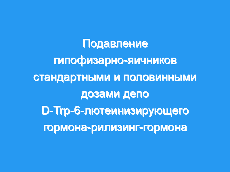 Наши результаты показывают, что полная стандартная доза (3,75 мг) депо D-Trp-6-LHRH и половинная доза (1,87 мг) были одинаково эффективны в своем десенсибилизирующем действии, и что десенсибилизация происходит быстрее при введении аналога в раннюю фолликулярную фазу..