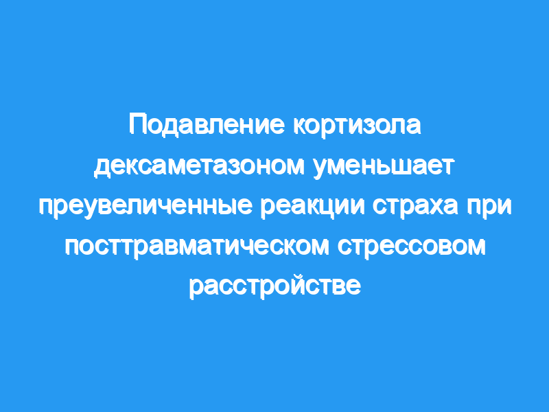 Кроме того, наблюдался значительный эффект лечения у пациентов с ПТСР, но не в контрольной группе, при этом дексаметазон снижал испуг, вызванный страхом, до CS+, F (1,32)=4,00, p=0,05. Также была выявлена положительная корреляция между FPS испытуемых с ПТСР и уровнем кортизола, r=0,46, p=0,01. Эти результаты свидетельствуют о том, что временное подавление функции HPA посредством подавления дексаметазоном может уменьшить преувеличенный страх у пациентов с ПТСР.