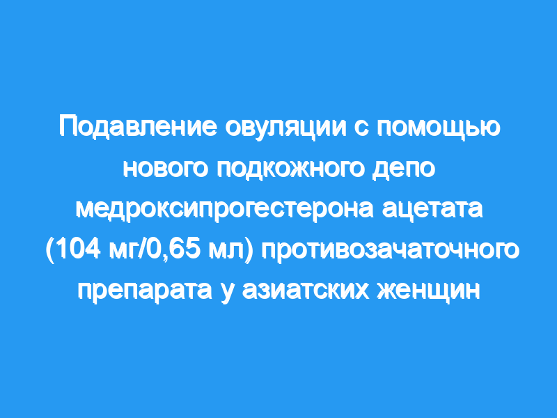 Двадцать четыре азиатские женщины (средний возраст [SD] 33,8 [43] года, диапазон, 22,7-40,1 лет, средний индекс массы тела [SD], 22,4 [3,0] кг/м(2)), принадлежащие к 5 этническим группам (китайцы, филиппинцы, индийцы, малазийцы и тайцы), были включены в исследование, подавление овуляции сохранялось на протяжении 91-дневного интервала приема, независимо этнической принадлежности или места инъекции. Овуляция была подавлена по крайней мере на 112 дней после инъекции у 23 (95,8%) женщин, о чем свидетельствует поддержание концентрации прогестерона в сыворотке крови <4,7 нг/мл. Фармакокинетические параметры МПА у этих азиатских женщин были аналогичны тем, о которых сообщалось ранее у белых женщин. Наиболее частыми нежелательными явлениями, о которых сообщалось, были симптомы, похожие на приливы, и головная боль легкой или умеренной интенсивности. Никаких серьезных побочных эффектов зарегистрировано не было.
