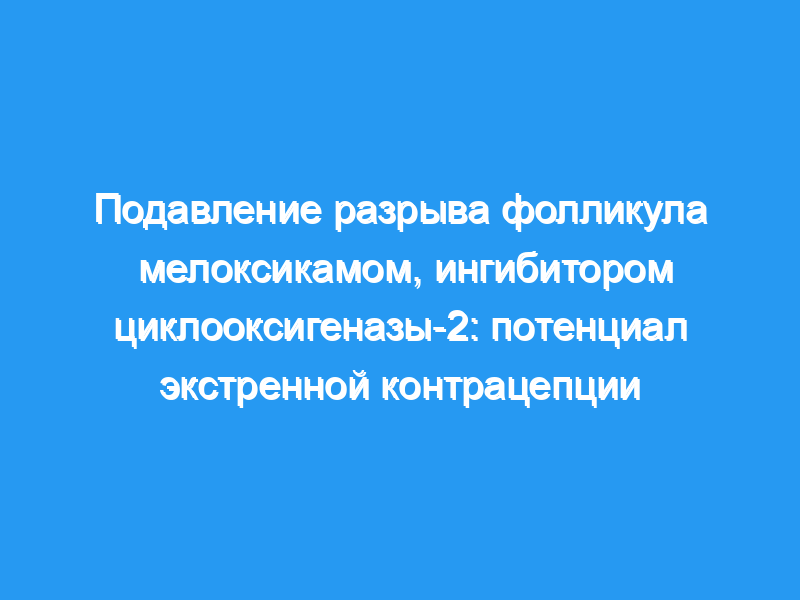 Имеются доказательства того, что ингибиторы циклооксигеназы-2 (ЦОГ-2) могут предотвращать или задерживать разрыв фолликула. Ингибиторы ЦОГ-2, такие как мелоксикам, могут иметь преимущества по сравнению с экстренной контрацепцией с левоноргестрелом, такие как продление терапевтического окна до 24 часов. Мы оценили влияние мелоксикама, вводимого в поздней фолликулярной фазе, на овуляцию у женщин.