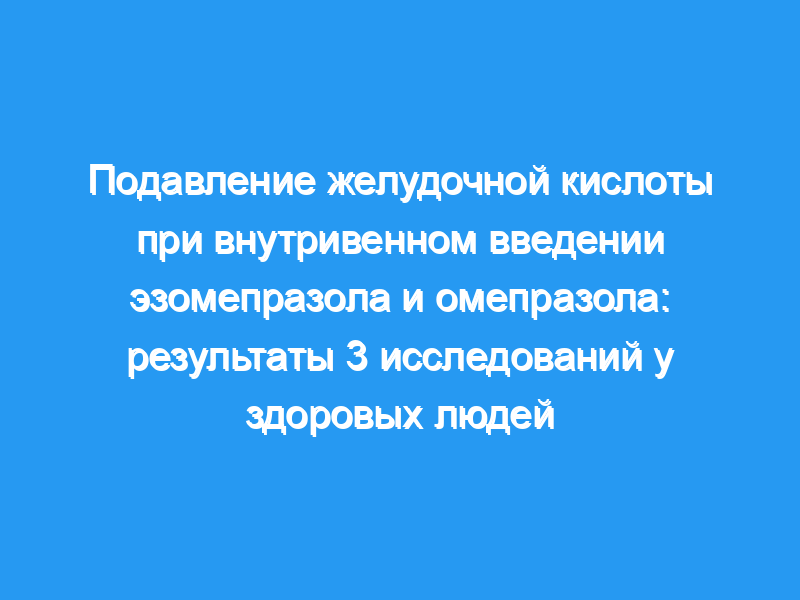 В общей сложности 90 здоровых пациентов, отрицательных к Helicobacter pylori, приняли участие в трех рандомизированных перекрестных исследованиях внутривенного применения эзомепразола. Сравнительное исследование кислотного выхода: открытое исследование, в котором сравнивались однократные внутривенные дозы 40 мг (вводимые в течение 30 мин) эзомепразола и омепразола. Исследование с диапазоном доз: открытое исследование, в котором сравнивался контроль кислотности с помощью пяти различных доз эзомепразола внутривенно, вводимых в течение 24 ч. Сравнительное исследование рН: двойное слепое исследование, в котором сравнивались эзомепразол внутривенно и омепразол в дозах 80 мг (более 30 мин) + 8 мг/ч (в течение 23,5 ч).