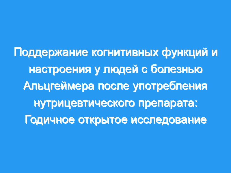 Диетические вмешательства показали различную эффективность в отношении когнитивных функций при болезни Альцгеймера (БА). Двадцать четыре человека с диагнозом AD получали нутрицевтическую композицию (NF: фолиевая кислота, альфа-токоферол, В12, S-аденозилметиоинин, N-ацетилцистеин, ацетил-L-карнитин) в условиях открытой маркировки (ClinicalTrials.gov NCT01320527). Первичным результатом была когнитивная работоспособность.