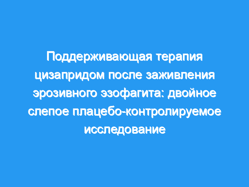Поддерживающая терапия цизапридом в дозе 20 мг nocte улучшает давление в нижнем пищеводном сфинктере у пациентов, у которых эзофагит был излечен омепразолом. Однако цизаприд не лучше плацебо в предотвращении симптоматического рецидива или ухудшения качества жизни.