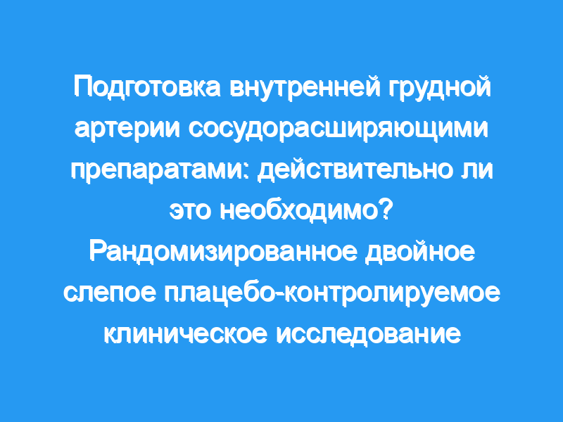 Внутренняя грудная артерия стала предпочтительным каналом для аортокоронарного шунтирования. Чтобы избежать спазма артерии и увеличения ее диаметра и кровотока, различные сосудорасширяющие средства использовались различными хирургами либо внутрипросветно, либо путем местного применения. С целью определения наилучшего сосудорасширяющего средства для подготовки внутренней грудной артерии было проведено рандомизированное двойное слепое плацебо-контролируемое клиническое исследование в группе пациентов, которым было проведено плановое аортокоронарное шунтирование. Методы и результаты: Восемьдесят (80) последовательных пациентов, впервые подвергшихся плановому аортокоронарному шунтированию, были случайным образом разделены на пять групп лечения. Свободный поток левой внутренней грудной артерии измеряли с помощью электромагнитного расходомера. Первое измерение было выполнено вскоре после того, как внутренняя грудная артерия была отсечена от грудной стенки, а второе непосредственно перед выполнением дистального анастомоза с левой передней нисходящей коронарной артерией. В течение промежутка времени между двумя измерениями внутреннюю грудную артерию погружали в специальную трубку-аппликатор, содержащую 20 мл раствора одного из следующих препаратов: папаверин 2 мг/мл, нитроглицерин 1 мг/мл, верапамил 0,5 мг/мл, нитропруссид 0,5 мг/мл, физиологический раствор 0,9%.