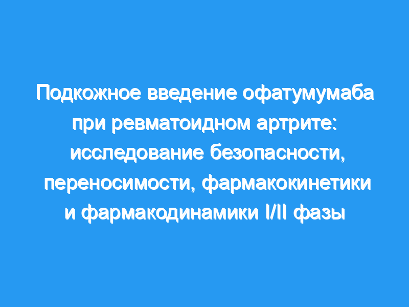 Изучить безопасность и переносимость однократной подкожной (SC) дозы офатумумаба, полностью человеческого моноклонального антитела против CD20, у пациентов с ревматоидным артритом (РА), принимающих фоновый метотрексат (MTX). Второстепенные задачи включали характеристику фармакокинетики и фармакодинамики.