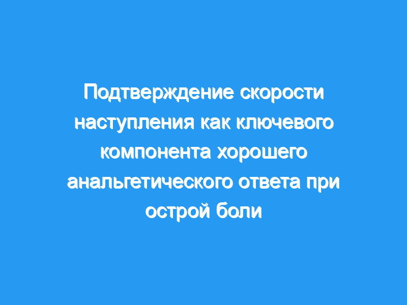Предыдущий анализ одного набора данных об острой боли после удаления третьего моляра продемонстрировал сильную взаимосвязь между скоростью уменьшения интенсивности боли и общим облегчением боли, а также потребностью в дополнительной анальгезии.