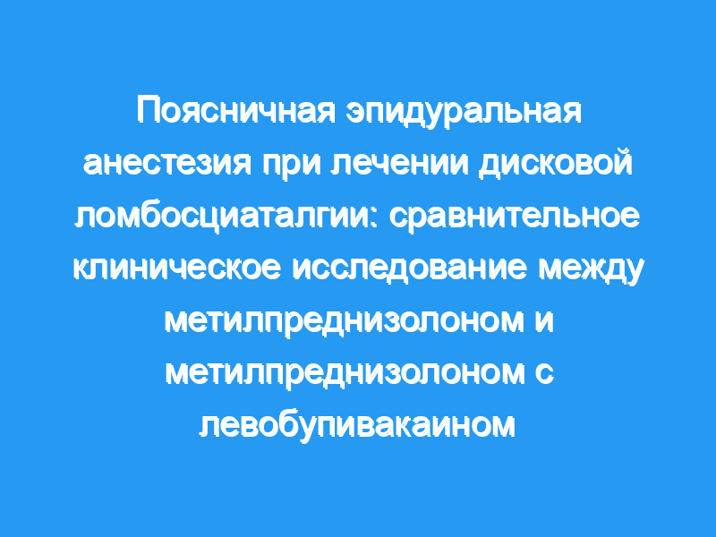 Предпосылки и цели: Метод поясничной эпидуральной анестезии используется при лечении ломбосциаталгии с 1953 года. В большинстве случаев метилпреднизолон используется вместе с местным анестетиком, и неизвестно, одинаково ли эффективно изолированное применение метилпреднизолона для облегчения симптомов. Целью этого исследования было сравнить эффективность двух различных растворов — метилпреднизолона с физиологическим раствором и метилпреднизолона с левобупивакаином, вводимого в эпидуральное пространство, для лечения ломбосциаталгии, вторичной по отношению к поясничной грыже межпозвоночного диска.