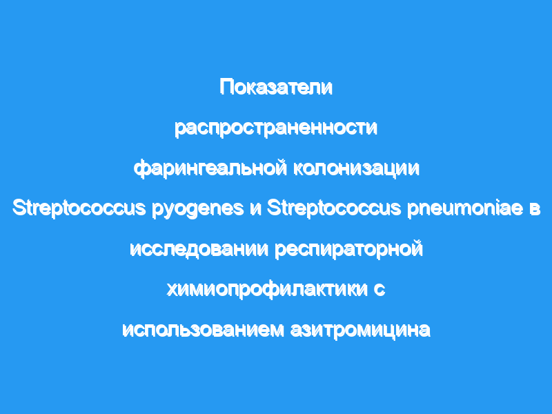 Проспективная оценка распространенности фарингеальной колонизации Streptococcus pyogenes и Streptococcus pneumoniae до и после клинического испытания химиопрофилактики азитромицином в когорте курсантов Корпуса морской пехоты США. Кроме того, сообщается о минимальных ингибирующих концентрациях (МИК) для всех изолятов стрептококков, для азитромицина, пенициллина, эритромицина и цефотаксима.