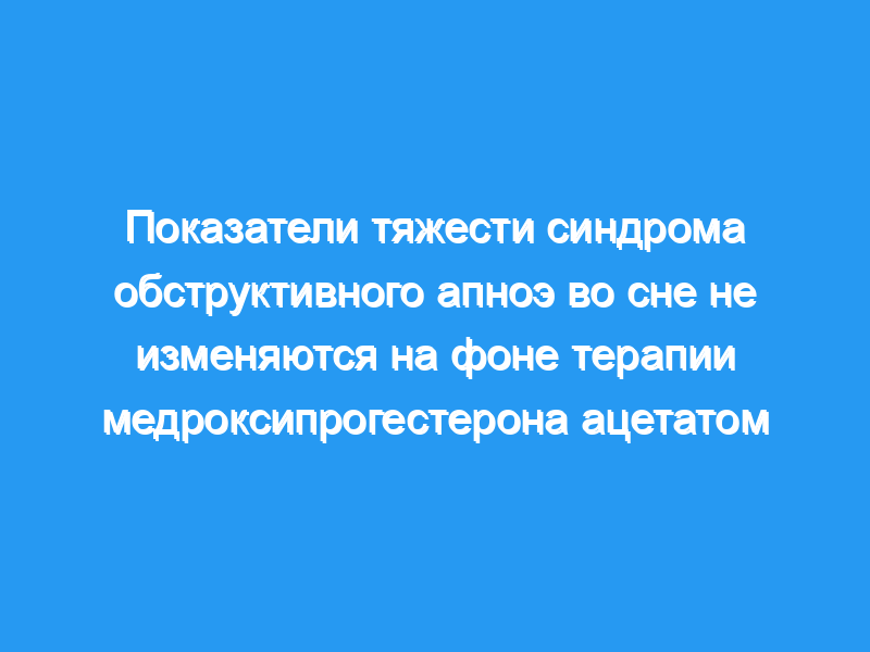 Десять пациентов мужского пола с синдромом OSA прошла первичную полисомнограмму с мониторированием ЭЭГ, ЭОГ, миогиоидальной ЭМГ, орального и носового воздушного потока, движений брюшной полости и грудной клетки и SaO2. Затем пациенты были включены в рандомизированное двойное слепое перекрестное исследование с использованием MPA в дозе 150 мг/сут и MPA плацебо.